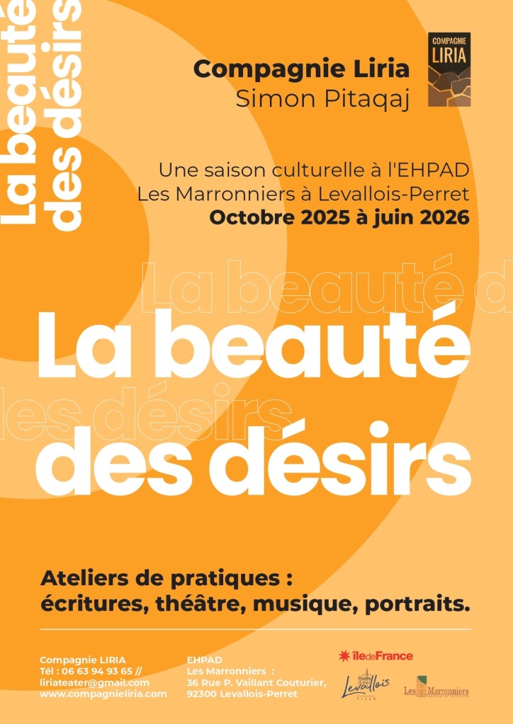 La beauté des désirs est une résidence culturelle et artistique, qui rassemble différentes disciplines : le récit de vie, l’écriture, le jeu théâtral, la danse, le conte, la musique et le spectacle. Face au vieillissement, à la perte d’autonomie et au sentiment d’isolement, le projet La beauté des désirs est un espace-temps de liberté et d’expression, de partage, d’évasion, d’ouverture vers la création et ainsi la vie.