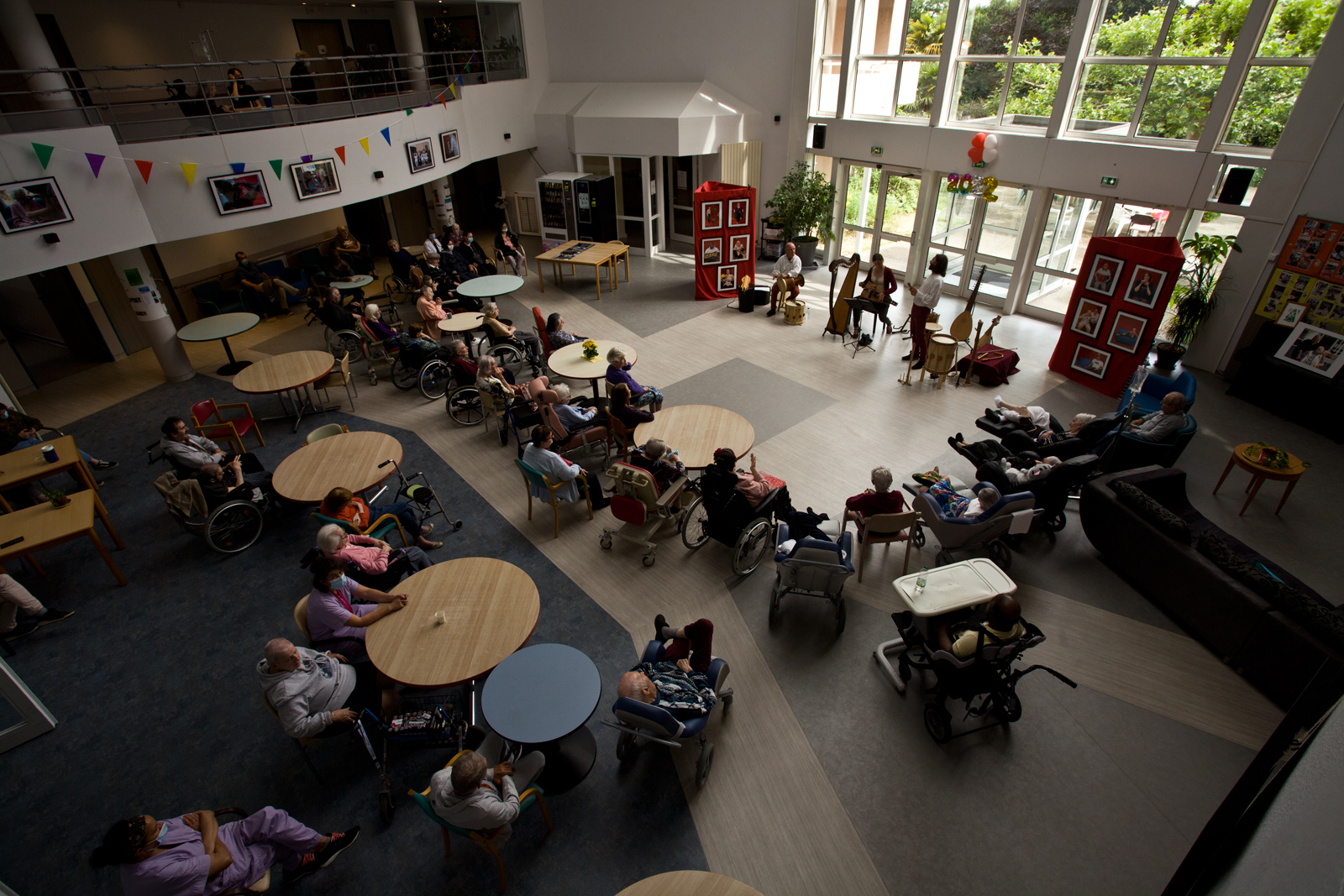 L’organisation des veillées-contes et l’exposition permet aux patients, au personnel médical et les familles de se retrouver. L’Ehpad n’est plus seulement une institution médicalisée mais peut devenir un lien culturel. Cela permet de réintroduire une dynamique sociale au sein de l’établissement et de s’ouvrir à l’extérieur.