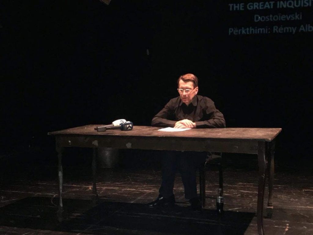 “ Enfin Redjep vint… Et puis, il y eut ce moment de grâce avec l’acteur Redjep Mitrovitsa proposé par la compagnie Liria, installée à Grigny, dirigée par le Kosovar Simon Pitaqaj. L’acteur lut quelques pages du Grand inquisiteur extrait des Frères Karamazov de Dostoïevski ”